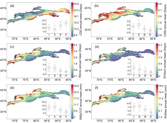 天山横亘欧亚腹地,是中亚干旱区的主要水源地和生态屏障。全球变暖加剧了水循环,加大了极端气候水文事件,对中亚天山地区极端降水的季节性模式产生了深刻影响。极端降水的时滞效应可能导致灾害发生的时间延迟或加剧、不确定性增加,从而加大了灾害预测难度和灾害损失。以往研究大多关注瞬时影响分析,即在单一时间尺度上考虑影响因子与极端降水之间的同步关系,而关于中亚天山地区气象要素及大气信号对极端降水指数的时滞效应及其背后机理解释仍存在不足,其中的基本特征仍待揭示。